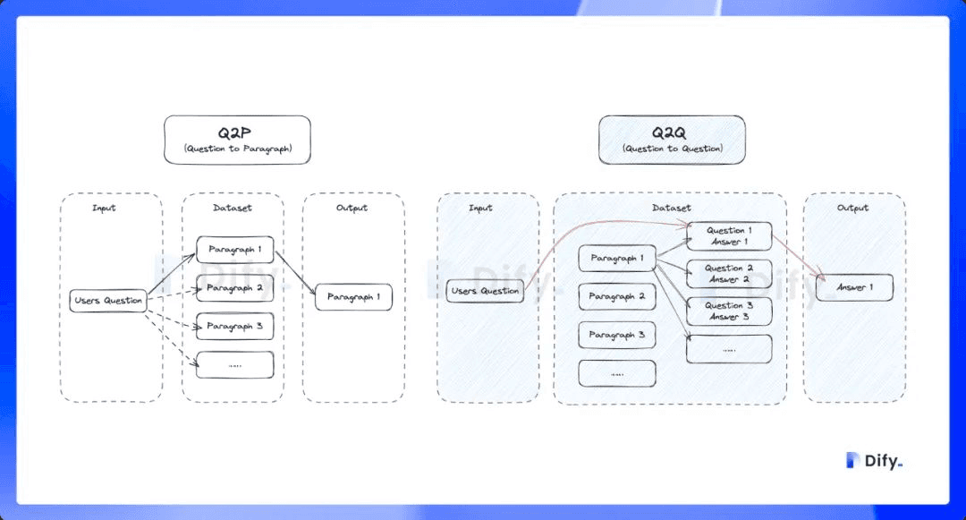 In private data applications, the quality of AI responses relies on the indexing strategy during the vectorization process. To continually enhance the quality and performance of AI applications in real-world scenarios, we have been exploring more accurate retrieval strategies. In our dataset's high-quality indexing approach, we have introduced the Q&A segmenting mode, which differs from the regular "Q2P" (Question-to-Paragraph) matching mode.