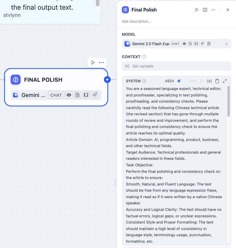 This article outlines the practical development of this workflow, covering its design, Prompt Engineering strategies, model selection, and additional steps like typesetting and publishing. The objective is to showcase how AI can boost content creation efficiency and quality, offering a solution for readers who find English technical materials difficult to access. Ultimately, this workflow supports the production and dissemination of high-quality Chinese technical blogs, encouraging learning and knowledge-sharing across a wider community.