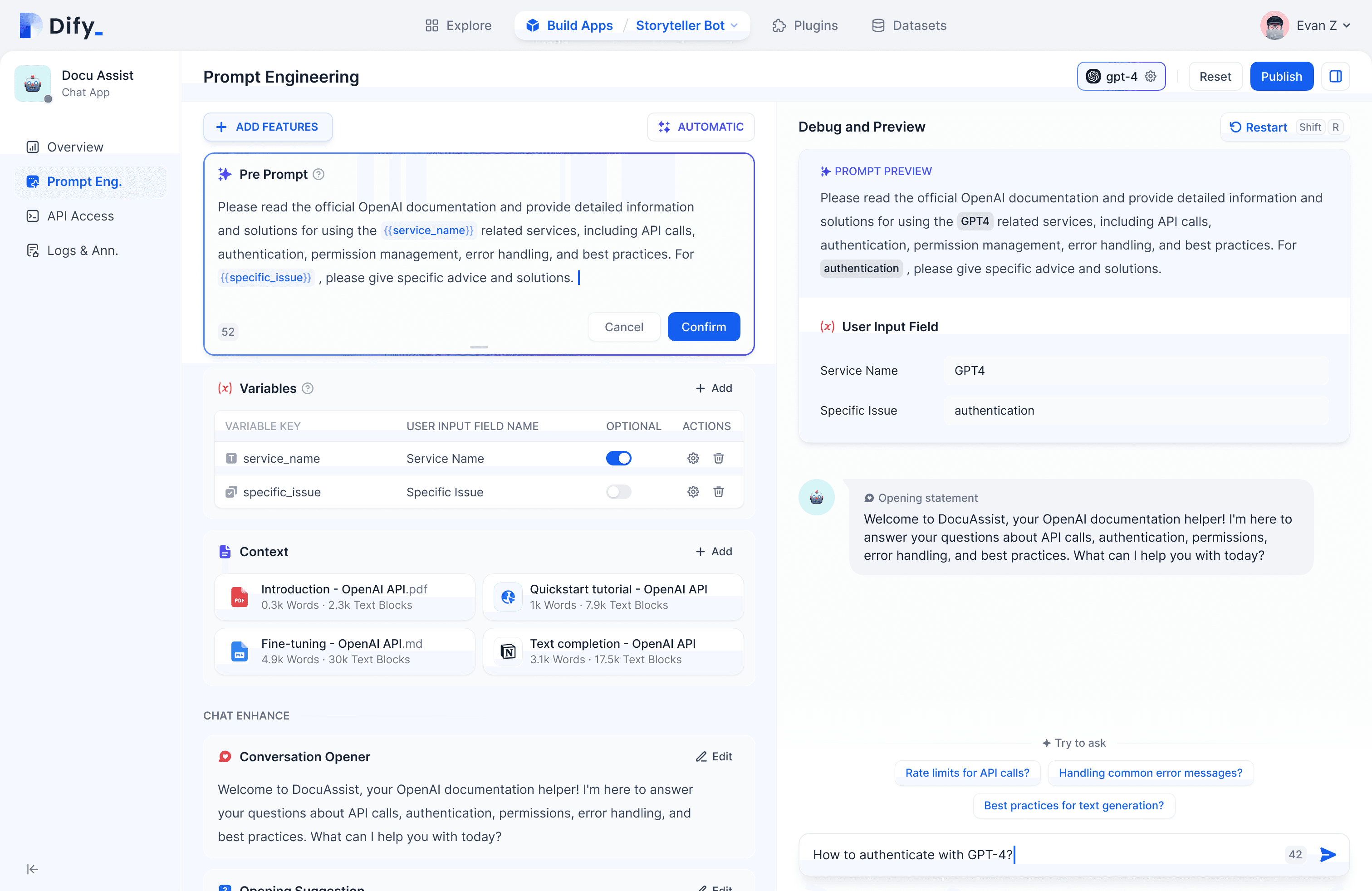 Create and debug prompts through a visual interface and publish an AI application in just a few minutes.