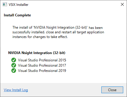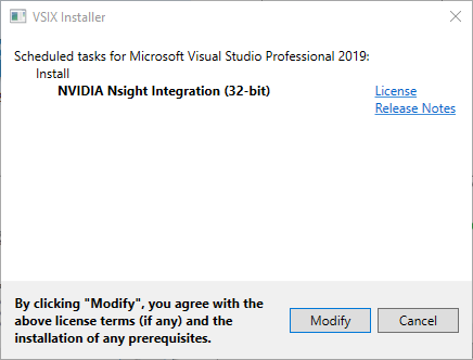 Choose NVIDIA Nsight Integration (32-bit) for Visual Studio 2019 and earlier