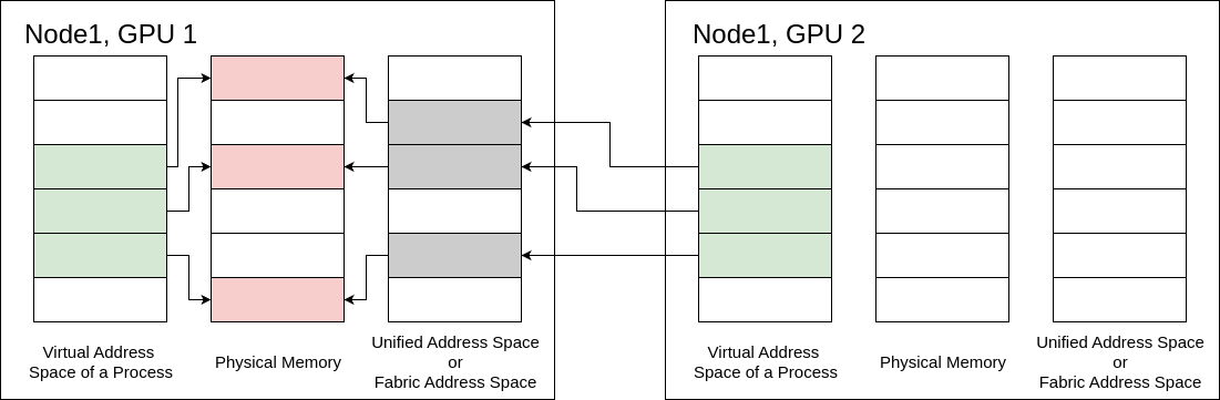 CUDA’s VMM API brings a similar concept to GPU memory management by allowing developers to explicitly reserve a virtual address range and then later map it to physical GPU memory. With VMM, applications can specifically choose certain allocations to be accessible by other devices.