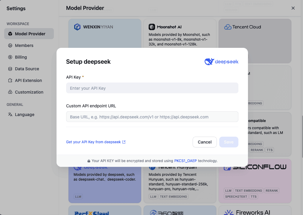 First, you need to obtain and add your DeepSeek API Key in "Settings" -> "Model Providers".