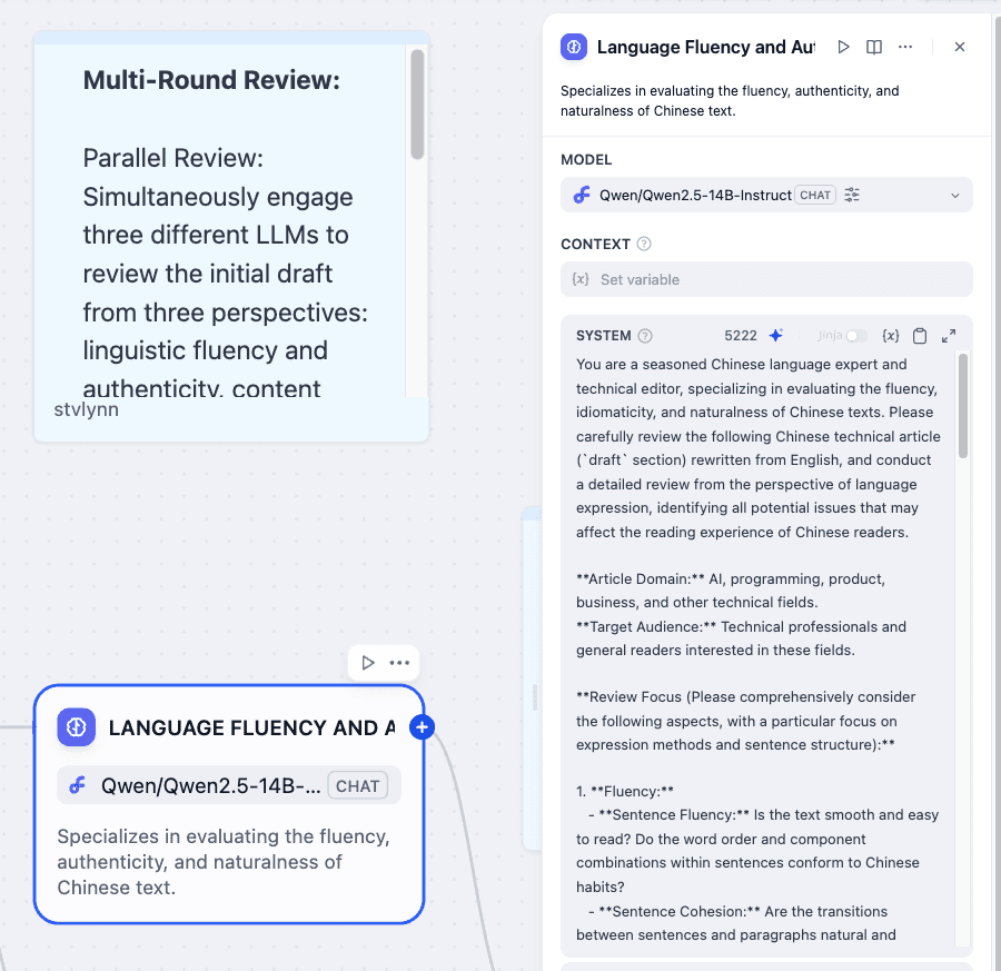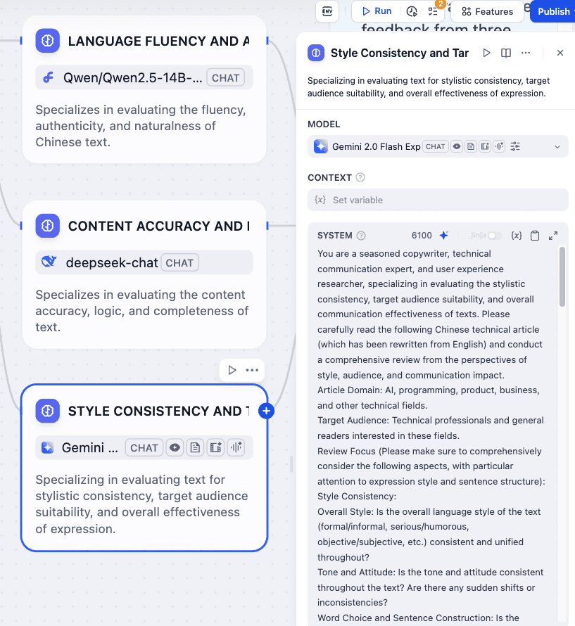Testing reveals that this workflow markedly improves the quality of Chinese adaptations of English technical articles. The output is fluent, authentic, and natural, with accurate content, clear logic, consistent style, and wide reader appeal.