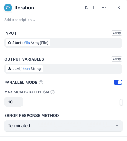 Select the Iteration node, turn on Parallel Mode, and set a reasonable number of parallel tasks.