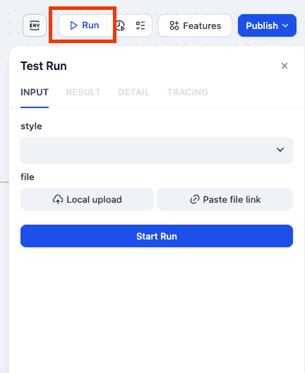 Click "Run", enter all the variables, and click "Start Run" to start the execution.