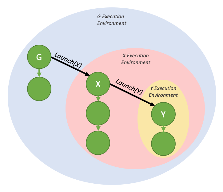The below diagram shows the environment encapsulation that would be generated by the fire-and-forget sample code in the previous section.