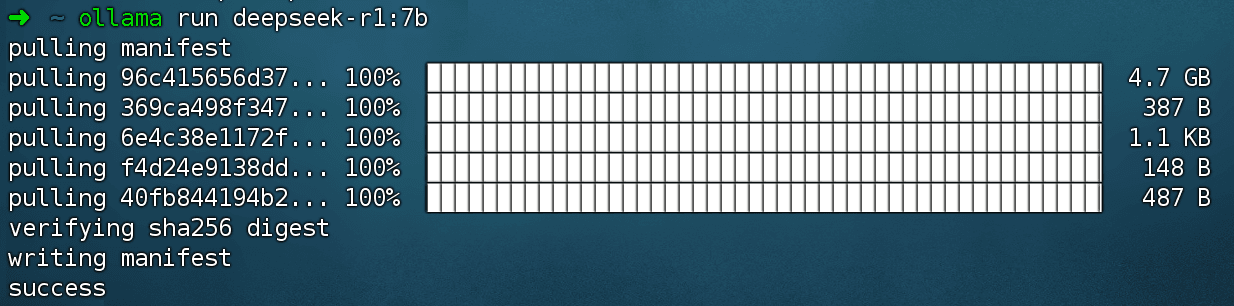 Run the command ollama run deepseek-r1:7b to install the DeepSeek R1 model.