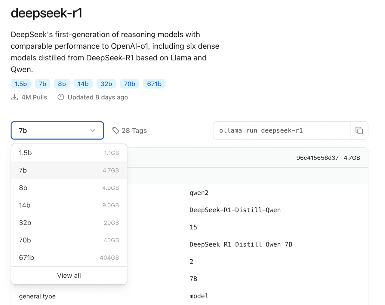 Note: The suffix B indicates the number of training parameters. In general, more parameters mean better performance but also higher memory requirements.