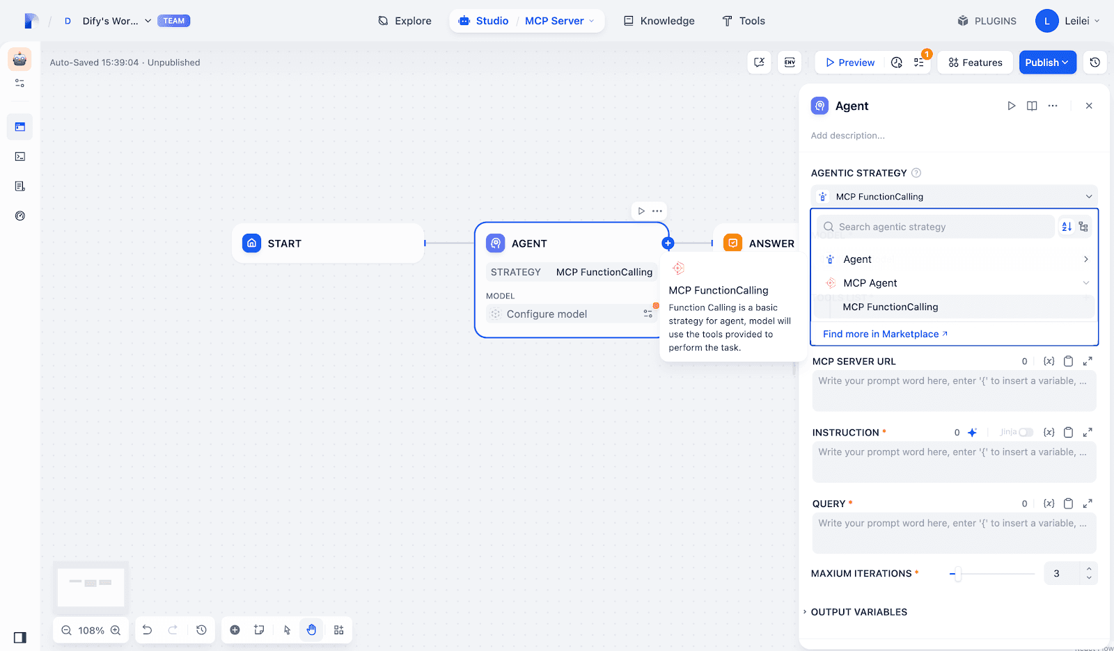 Beyond the SSE plugin, the MCP Agent Strategy plugin embeds MCP directly into your workflow Agent nodes.