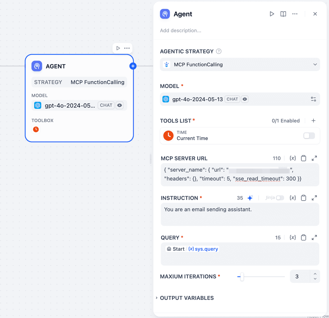 After configuring, create a new Agent app and enable your MCP SSE plugin in the "Tools" section. Your Agent will intelligently invoke relevant tools based on user intentions—for example, automatically drafting and sending emails via integrated Gmail actions.