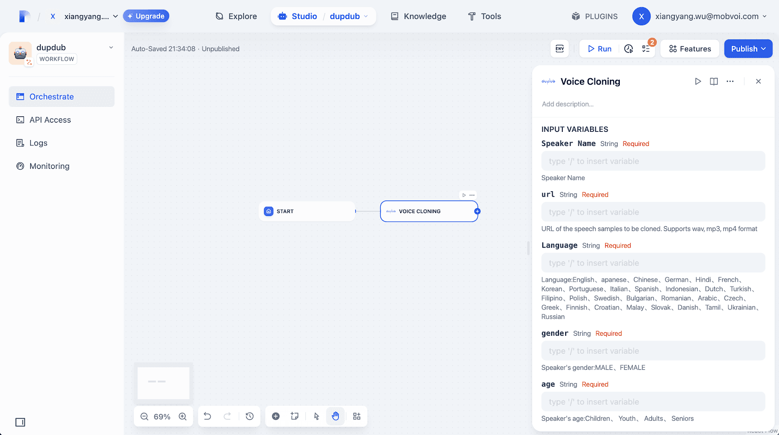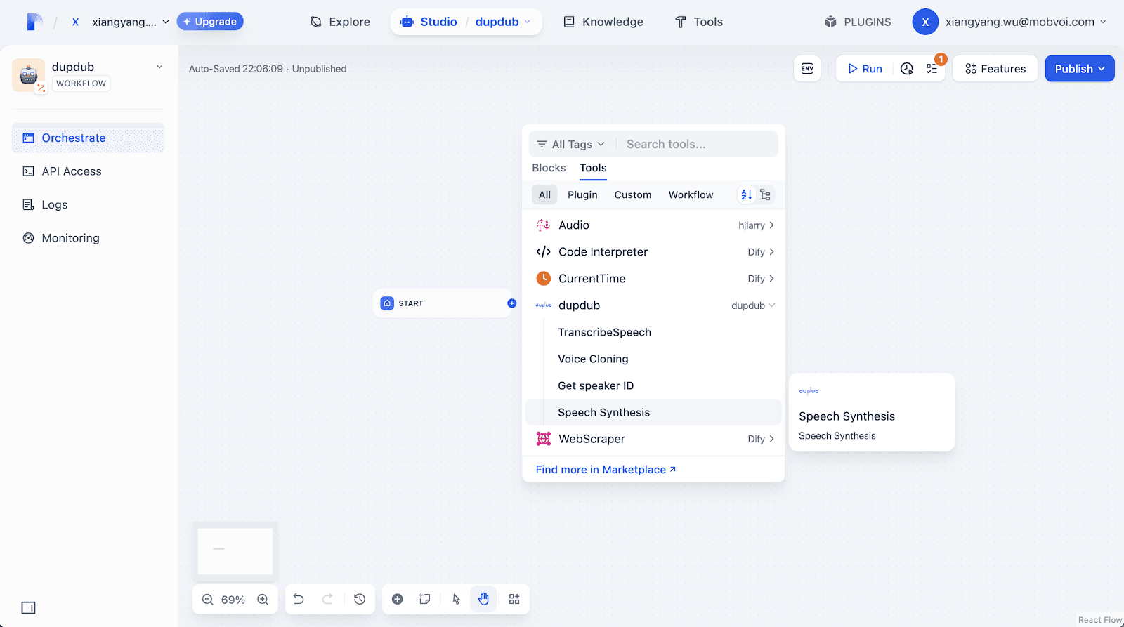 Below is a quick walkthrough of how to use DupDub’s tools in Dify.