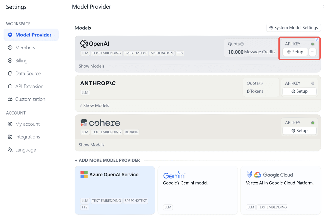 Set Up Model Provider in Dify