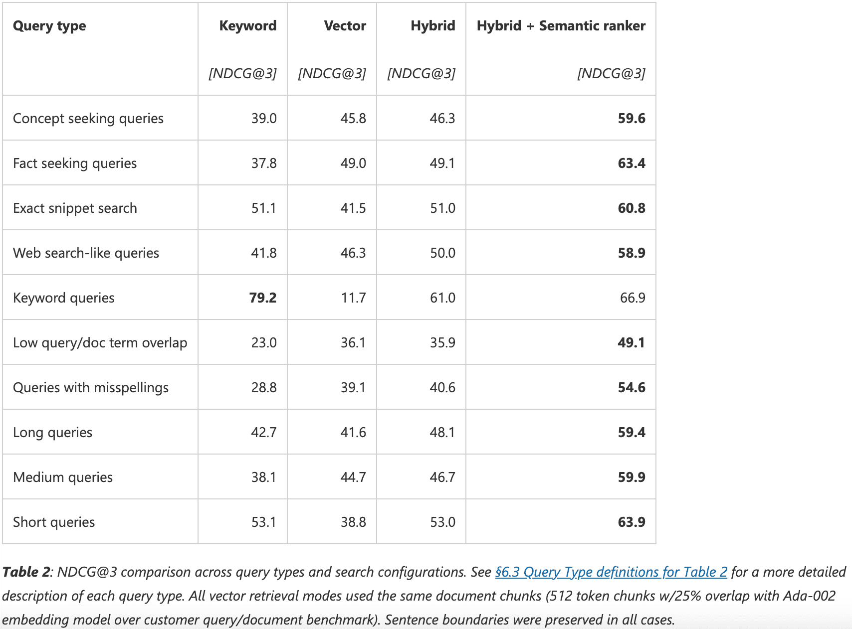 Azure Cognitive Search: Outperforming vector search with hybrid retrieval and ranking capabilities