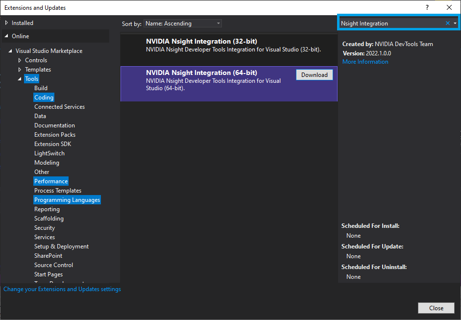 1. Appendix A: Install NVIDIA Nsight Integration Extension from the Microsoft Visual Studio Marketplace Site