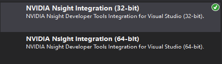 Choose NVIDIA Nsight Integration (32-bit) for Visual Studio 2019 and earlier