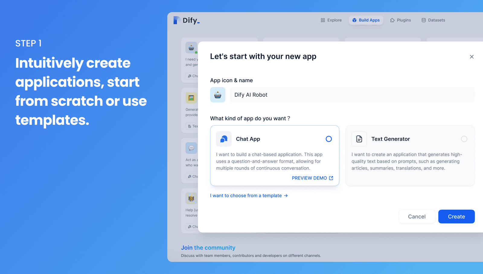 The term "Dify" is derived from Define + Modify, which means to define and continuously improve your AI application.