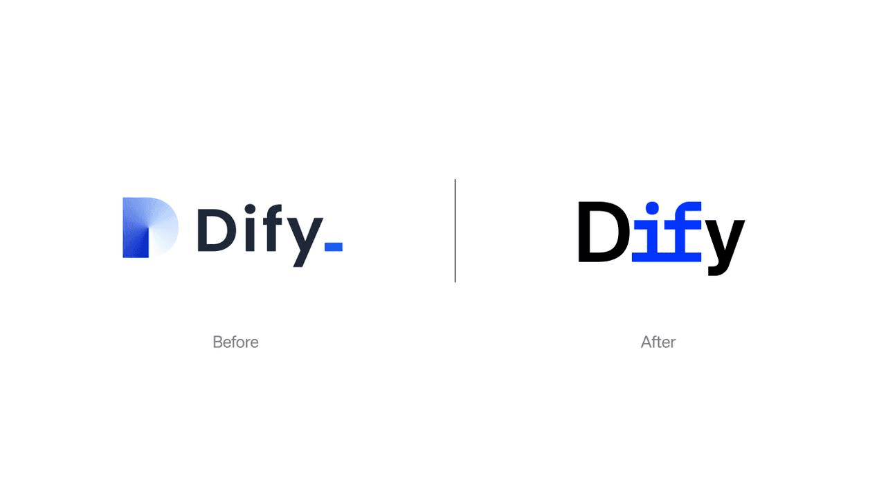 We separate "if" from "Dify", and turned "if" into a more thoughtful, retro typewriter font for it. This symbolizes a connection to foundational ideas and intellectual curiosity. The "Dy" retains a modern, sans-serif feeling, representing futurism and momentum forward. This design bridges the past and the future, reflecting our approach to technology within an infinite hypothesis of possibilities – one that is rational and measured.
