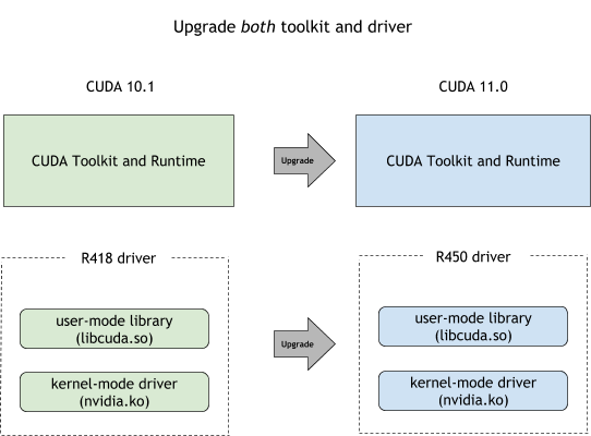 Backwards compatibility ensures that a newer NVIDIA driver can be used with an older CUDA Toolkit. This is implicit and most simple way of doing upgrades.